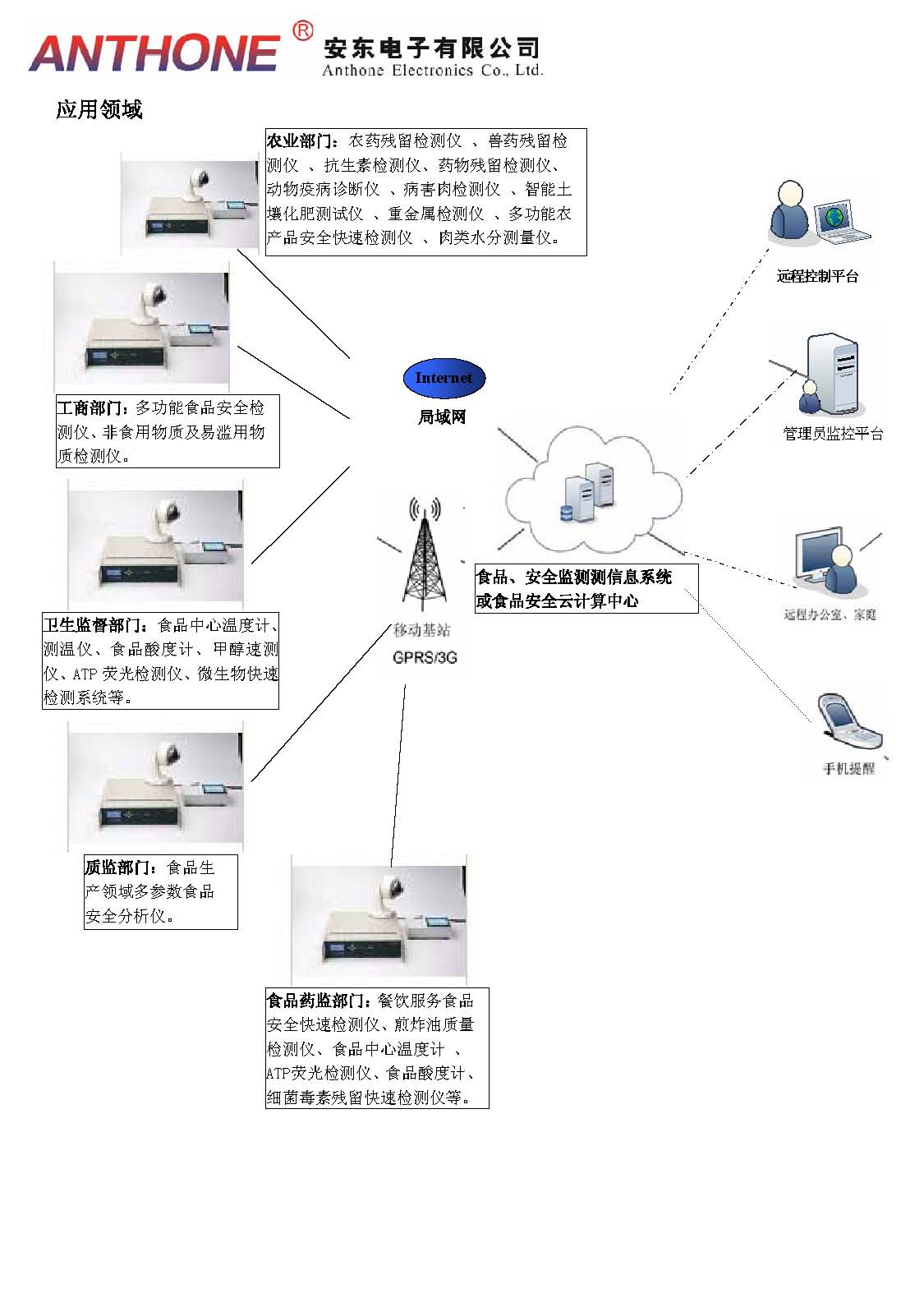 ANTHONE物聯(lián)食品安全裝置與系統(tǒng)原理: 通過物聯(lián)網(wǎng)技術(shù),對食品的各項關(guān)鍵數(shù)據(jù)進行采集、存儲,實現(xiàn)數(shù)據(jù)分析和智能處理,形成完整的數(shù)據(jù)庫,可提供一致、高效的數(shù)據(jù)查詢、追溯機制。實現(xiàn)市場動態(tài)控制,食品安全動態(tài)控制,構(gòu)建信息監(jiān)測和通報網(wǎng)絡體系。