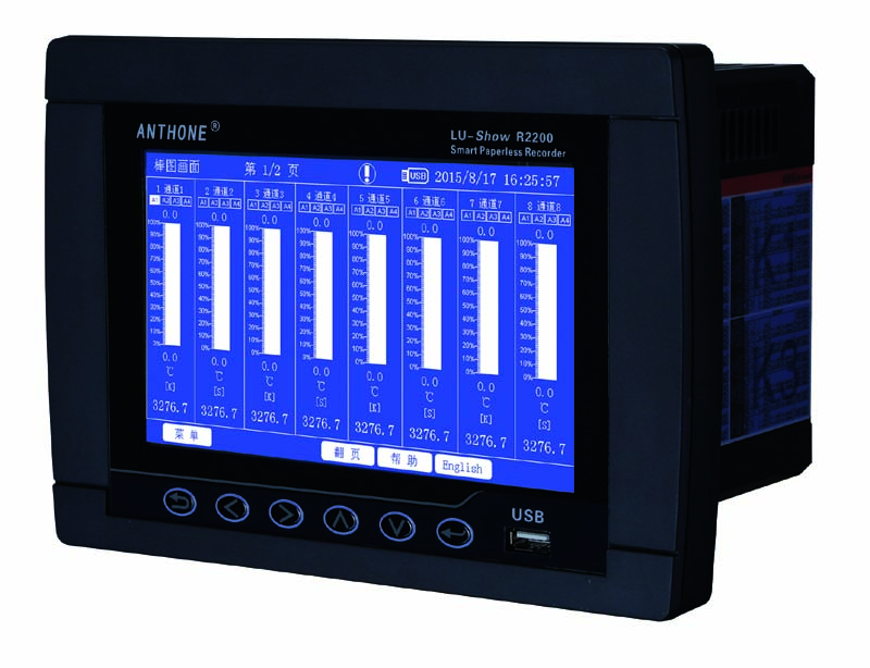 LU-show系列智能無紙記錄儀集記錄與控制于一身,具有全切換萬能輸入:熱電偶、熱電阻、標(biāo)準(zhǔn)電壓和標(biāo)準(zhǔn)電流等信號;輸出控制方式有PID控制、位式控制、自整定控制和手動控制等。