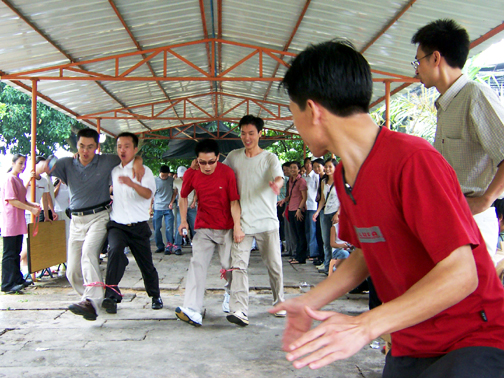 在動(dòng)工燒烤之前有2項(xiàng)激情熱身賽----拔河比賽、雙人接力賽,員工根據(jù)事先安排分為A、B、C、D四組。比賽緊張而激烈地進(jìn)行著,竟?fàn)幍膱?chǎng)面不亞于奧運(yùn)會(huì)。裁判嚴(yán)肅公正,隊(duì)員也奮力拼搏。尚未比賽的兩組充當(dāng)啦啦隊(duì),加油!加油!加油!多么激動(dòng)人心的吶喊。不多時(shí)已有一組決出了勝負(fù),她們高興地歡呼著。經(jīng)過(guò)最后的角逐,勝利者產(chǎn)生了,你看他們笑的多開(kāi)心,勝利的喜悅都寫(xiě)在了臉上。接下來(lái)的雙人接力賽同事們也樂(lè)在其中,配合默契,互相協(xié)助共同邁著大步向前沖,激發(fā)出團(tuán)隊(duì)的合作精神以及更高昂的工作熱誠(chéng)和拼搏創(chuàng)新的動(dòng)力,使團(tuán)隊(duì)更富凝聚力。