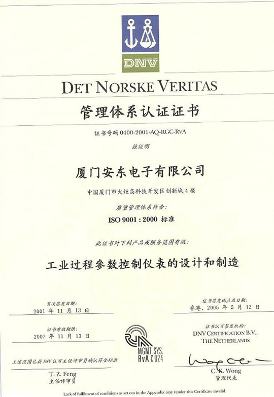 祝賀廈門安東電子再次通過挪威船級社(DNV)ISO9001國際質量管理體系的換證