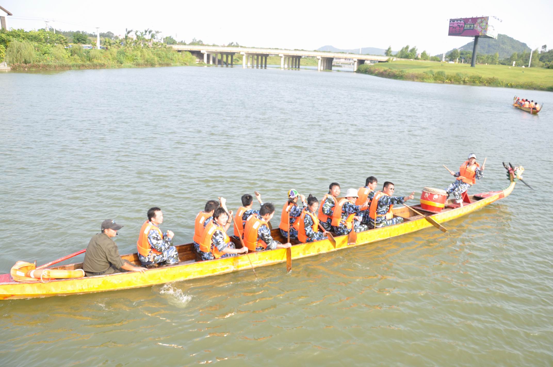 熟悉十分鐘后,開始了正式地三回合比賽。賽程:100米。終點:遠方的紅氣球。因為八個小分隊中我們小分隊的男子最多,自然這項比賽是占據(jù)天時地利人和,無可非議地在三輪賽中次次第一。那霸氣,那速度,直接無視周圍。當(dāng)然在第一輪的比賽中,我們小分隊不到二十秒開始就陸續(xù)有人“濕身”,“濕身”引起的聲效直接刺激周圍的同胞,同胞們更加賣力地劃,賣力地潑,本著“濕身”為榮的思想原則,整舟人員賽后據(jù)不完全統(tǒng)計有80%完全“濕身”。龍舟賽完后,我們都筋疲力盡,腰酸背痛,各個表示今后一定要多多運動,鍛煉體魄,與此同時,我們也深深體會到,力量固然重要,但是,要整齊劃一,往同一處使勁才是最鋒利無敵。正迎合那一句:兄弟同心,其利斷金!