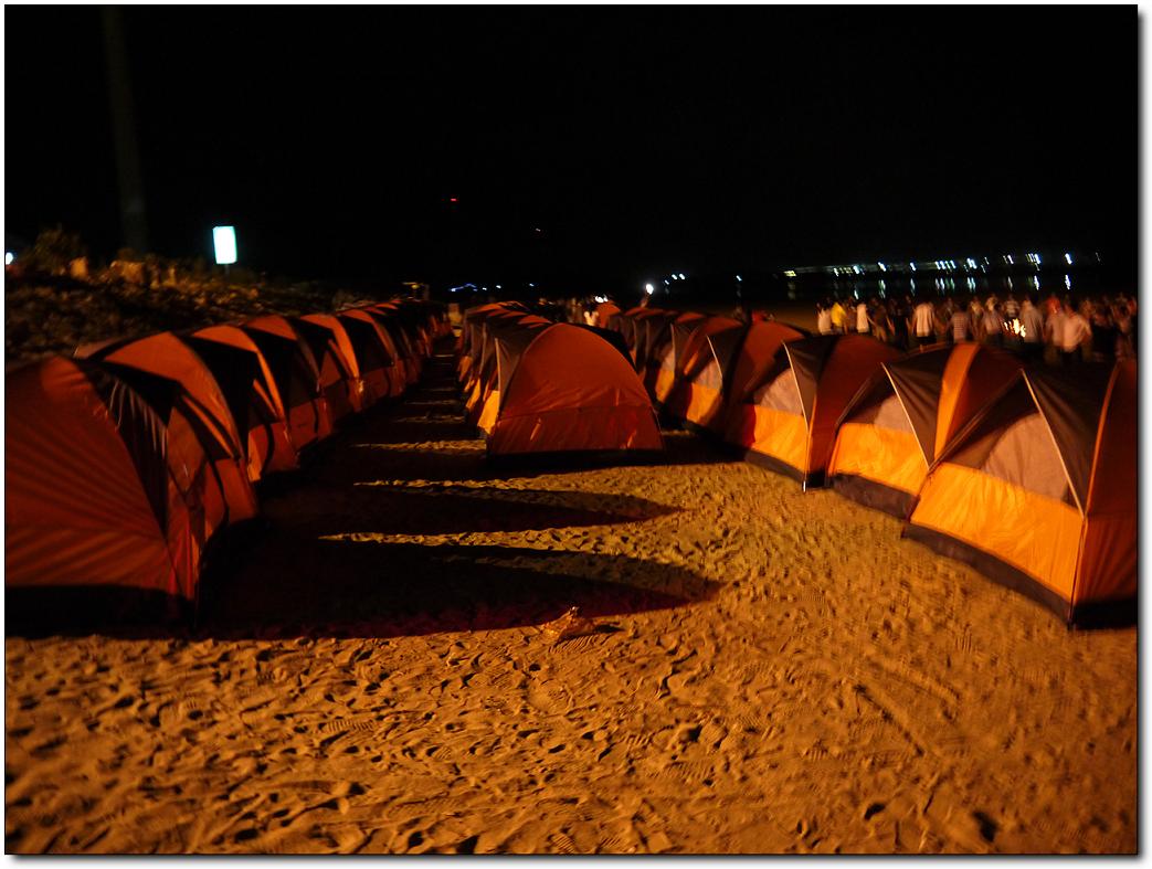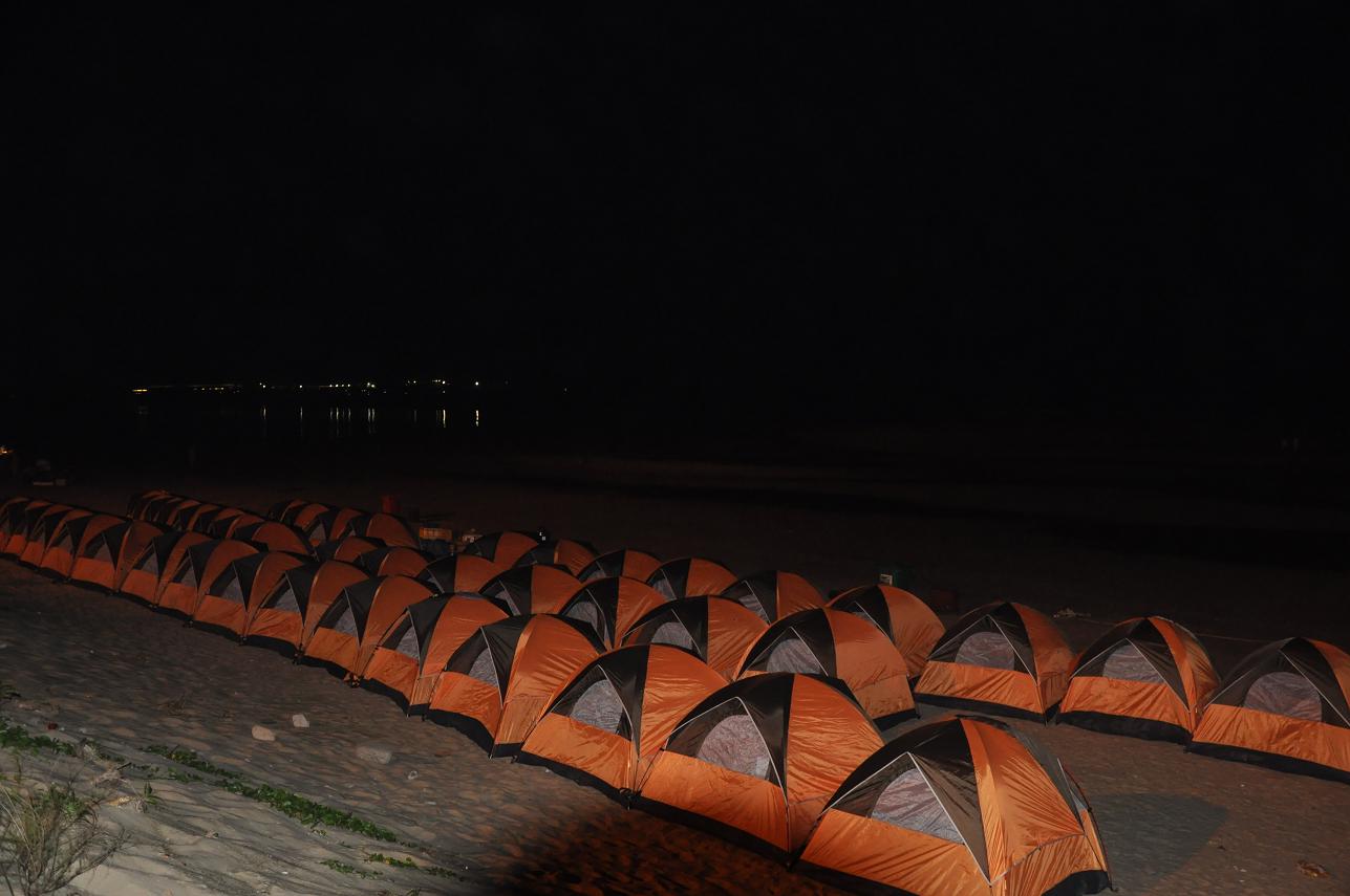 快樂的時光總是過得特別的快,轉(zhuǎn)眼間已到了23:00點(diǎn)了,這海灘上留下我們的足跡留下我們的歡聲笑語,但美好的記憶和愉快的心情被帶回來了,而且還將延緩著。23:00點(diǎn)大家興高彩烈的情緒中結(jié)束了燒烤與戲水游戲,各自回到自己的帳篷,自由活動,有的開始休息養(yǎng)好精神等待明天的到來,有的幾個一塊玩牌。我靜靜躺下聽著窗外的徐徐的海風(fēng)聲。這時,感覺很疲倦的作用下,我開始有了困意,最先鉆進(jìn)帳篷休息了,在帳篷里,聽著他們調(diào)侃著,也跟著竊笑,打開手機(jī)上網(wǎng)和在線的群友聊聊,大約一個小時我就下線了,我閉上雙眼,感覺真愜意啊,在海邊里,我們以天為房,以地為床,跟大地零距離的貼近著,聆聽著海水的天籟之聲,聞著泥土的芳香,遠(yuǎn)離喧鬧的城市,在這靜靜的沙灘上,盡情的感受著大自然的氣息。這是多么令人心曠神怡的美好生活?。τ诰镁映鞘械娜藖碚f,面對現(xiàn)代生活的壓力,露營對于我們來說多具有誘惑力啊。實際上,這份頗具個性化和具有代表性的戶外活動,讓我們充分回歸自然,親近自然。