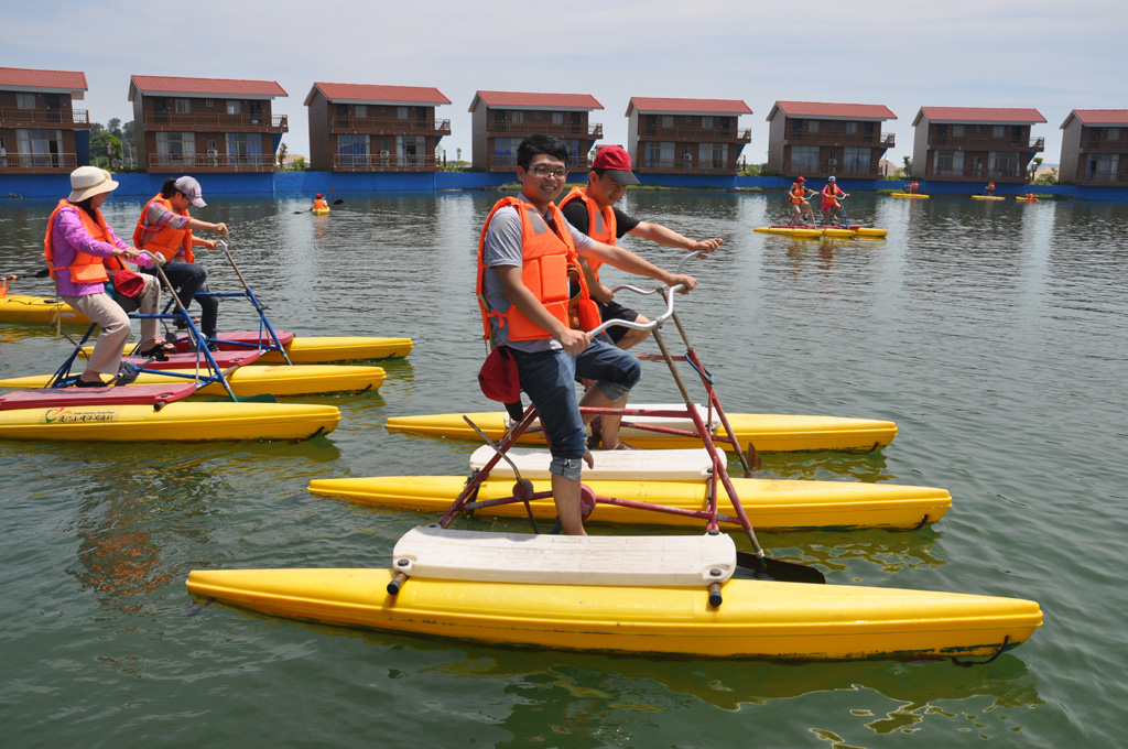 時間很快到了中午,午餐安排在了休閑漁村,導游介紹了下午的旅游行程和注意事項后,大家就開始品嘗著當?shù)靥厣暮ur美食。一餐美食之后,大家就又開始了新一輪的游玩,大家各自選擇漁村配套的娛樂設施(包括水上自行車、鹽浴、皮劃艇等),通過這些項目,我們大家不僅更好的增加了彼此之間的感情,也更能的體會到了團隊合作的重要性。