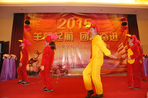 聆聽著各位安東電子領(lǐng)導(dǎo)的發(fā)言,我的思緒伴著演講聲,引導(dǎo)著我回顧公司走過的不平凡的路。而經(jīng)過半年多的努力和付出,看著自己一步步地走向成熟,我的心中也充滿著感慨。公司年會不僅是對一年的工作做一個整體的回顧和總結(jié),將安東電子的下一年的目標以及企業(yè)文化灌輸給全體員工,更重要的是與員工進行零距離的溝通,使員工體會到來自公司領(lǐng)導(dǎo)的關(guān)懷,并對公司的文化有了更深刻的領(lǐng)悟。 人生的一點一瞬,都會留下奮斗的影子,也會留下寶貴的精神財富和刻骨銘心的回憶。奮斗,是我們不變的理念。生命不息、奮斗不止。而此次年會的主題便是:“‘羊’帆起航、團結(jié)奮進”。圍繞著這一主題,我們開展了一系列的活動。 相比往年而言,本次年會的節(jié)目較少,但都堪稱經(jīng)典,也融入了更多往年不曾有過的元素在里頭。隨著鏗鏘有力的大合唱《團結(jié)就是力量》拉開了晚會的帷幕。經(jīng)典熱辣的開場舞調(diào)動了晚會的氣氛;魔術(shù)表演更是讓人稱奇,尤其是小朋友的加入,增加了魔術(shù)的看點和神秘感;來自嘉賓小朋友的樂器串燒讓我們領(lǐng)略到音樂世界的美妙,兒童世界的純真與美好;雙簧表演《樂極生悲》讓人忍俊不禁;當下流行的舞蹈《小蘋果》也被搬上了舞臺,動感十足的舞姿,讓人拍手稱贊;小品《算命2》以詼諧幽默的語言諷刺了社會中某種利用迷信進行詐騙的行為;隨著音樂聲起,搞笑舞蹈《安東三寶》精彩絕倫,惟妙惟肖,讓人捧腹大笑。最后,由生產(chǎn)部帶來的舞蹈《小雞小雞》將整場晚會推向了高潮。 今年的《水果蹲》游戲,趣味十足,并且在原有的游戲規(guī)則上別出心裁地升級為《安東產(chǎn)品蹲》,既體現(xiàn)了游戲的樂趣,同時也能檢驗大家對我們公司產(chǎn)品的熟悉程度,可謂一舉兩得。另一個游戲《踩氣球》,這個游戲主要是圍繞我們的主題“團結(jié)奮進”開展的。