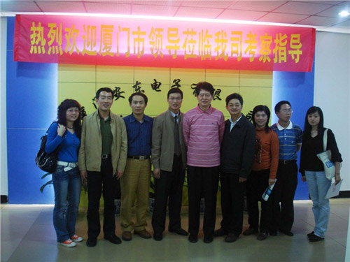 2008年4月19日下午,廈門市政協(xié)副主席莊威、市政府副秘書長陳永茂、市科技局副局長徐平東、市財政局企業(yè)處副處長蔡惠敏、市科技局副調(diào)研員吳志偉和廈門招商中心孫海濤等相關(guān)職能部門領(lǐng)導(dǎo)一行六人,在廈門安東電子有限公司肖國??偨?jīng)理的陪同下蒞臨安東公司重慶研發(fā)中心考察指導(dǎo)。